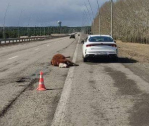 Со слов водителя, животное шло по обочине, а затем внезапно начало пересекать проезжую часть. При столкновении корова погибла.