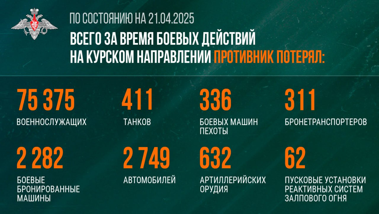 Продолжается вытеснение ВСУ из Курской области. Данные на 21 апреля 2025 года