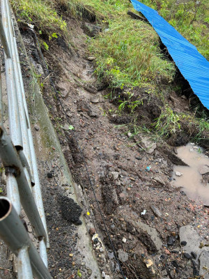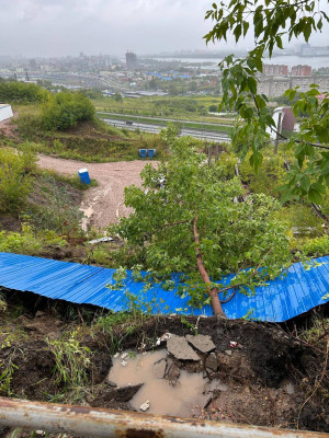 Сегодня в районе 24-го дома на улице 2-й Огородной второй раз за месяц сошёл грунт из-за обильных дождей. Повреждён забор, появилась трещина возле новой ливневой канализации.