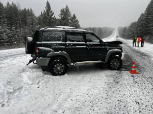 Медицинская помощь потребовалась пассажиру внедорожника и трём пассажирам автобуса, который съехал с дороги. В нём находились 12 пассажиров.