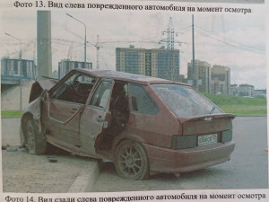 Сразу после выезда водитель разогнался до 75 километров в час. Через некоторое время он отвлёкся на упавшую зажигалку и не заметил, что дорога поворачивает направо, и в итоге выехал на тротуар, где машина столкнулась с опорой уличного освещения.