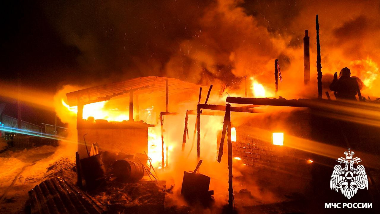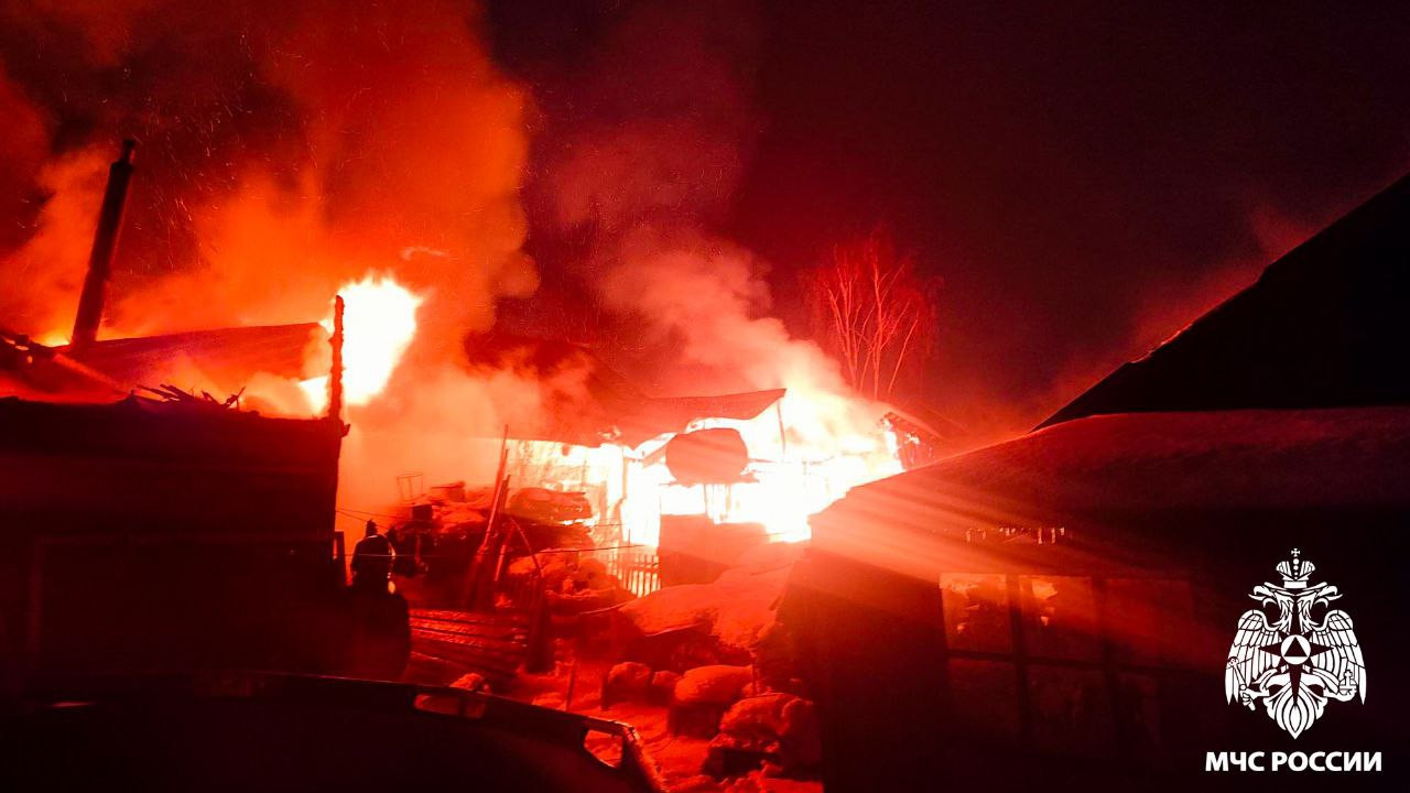 В новокузнецком селе Атаманово огонь уничтожил часть дома и надворные постройки