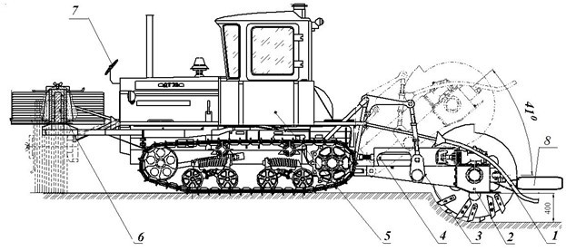 - агрегат подъезжает к месту работы, включает привод рабочего органа и прорезает в грунте щель протяжённостью 4 - 5 м.