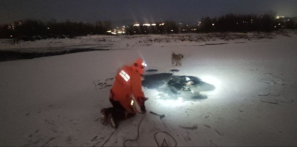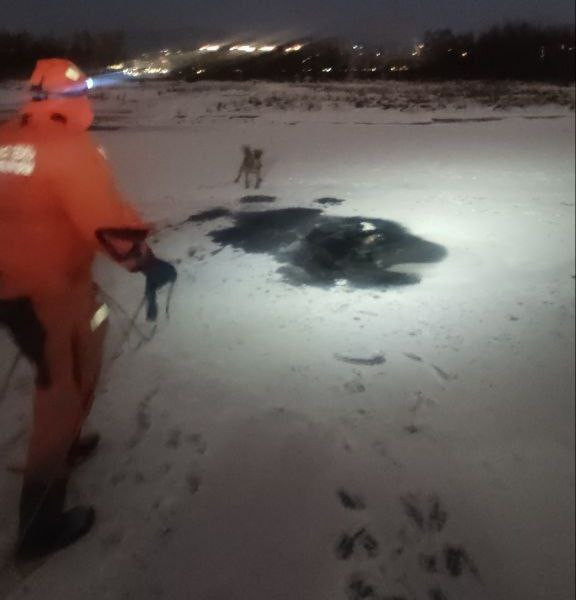 Сегодня вечером в краевом центре мужчина, гуляя с собакой, вышел на тонкий лёд в районе улицы Дубровинского. Лёд не выдержал большой нагрузки, и красноярец провалился воду.