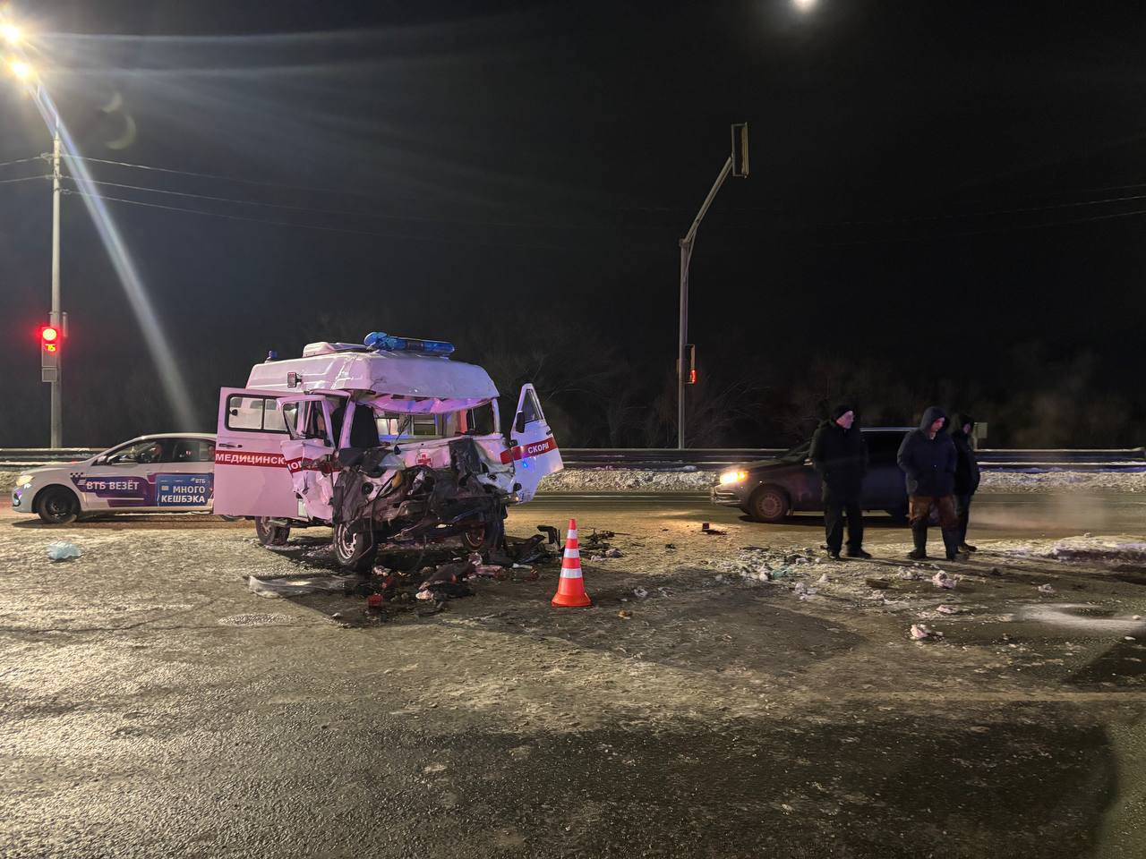 В результате автоаварии пациент скорой помощи - находившийся в коме 55-летний мужчина - скончался на месте ДТП, фельдшеры скорой помощи - женщины 1956 и 1980 годов рождения, а также водитель скорой помощи 1960 года рождения доставлены в медицинское учреждение.