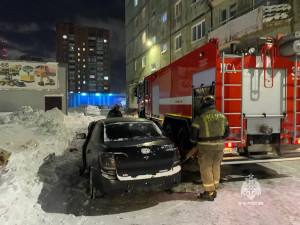 В городе Норильске загорелся легковой автомобиль. Площадь пожара - 1 квадратный метр. На тушении огня работали 4 человека личного состава МЧС и 2 единицы техники.