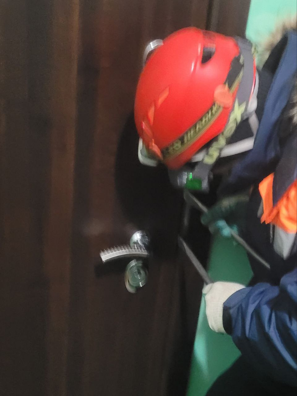 Сотрудники Шарыповского поисково-спасательного отряда прибыли на место провели необходимые слесарные работы и открыли дверь на балкон.