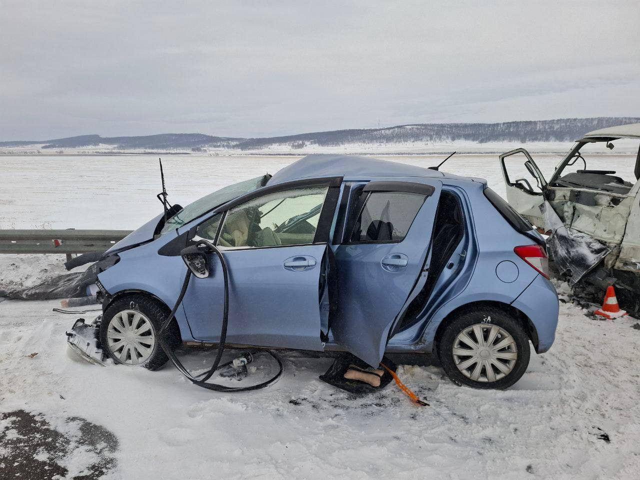 Сегодня на 252-м километре автодороги Р-257 «Енисей» 38-летний мужчина, управлявший автомобилем Toyota Vitz, допустил столкновение с грузовым автомобилем Mitsubishi, который двигался во встречном направлении. За рулём грузовика находился 39-летний водитель.