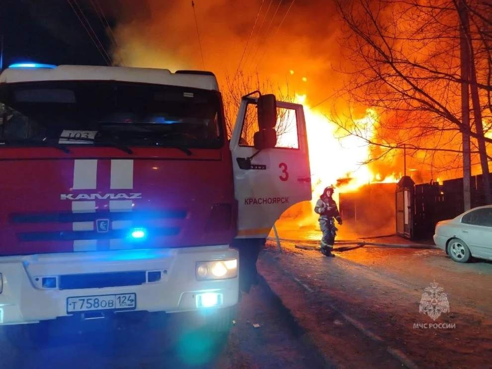 Сотрудники МЧС России ликвидируют пожар в частном жилом доме в Красноярске