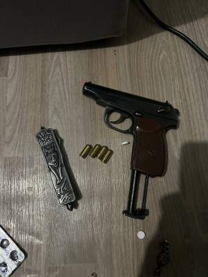 Кроме того, полицейские обнаружили и изъяли пистолет, имеющий признаки переделки из охолощённого оружия в боевое. Он вполне пригоден для стрельбы. Решается вопрос о возбуждении уголовного дела по факту незаконного изготовления оружия.