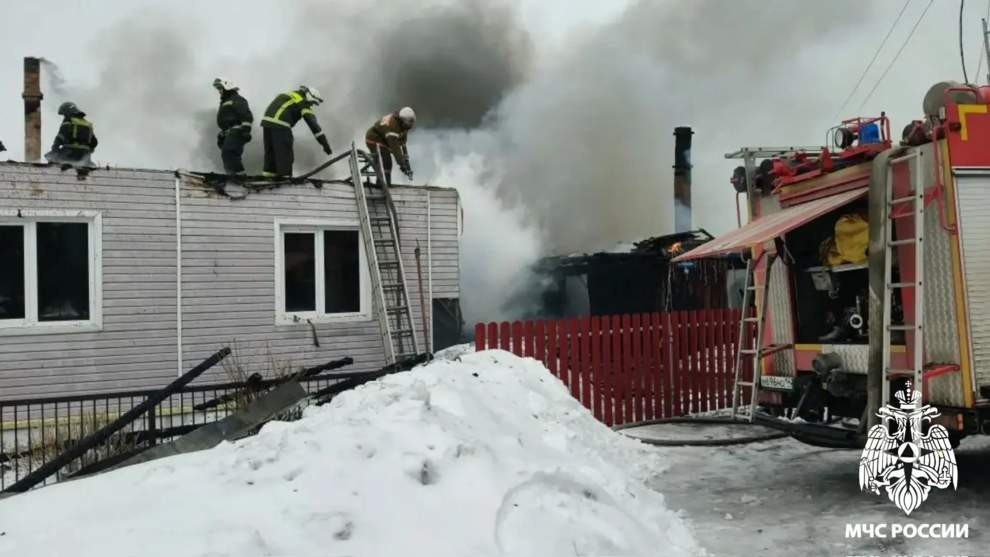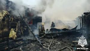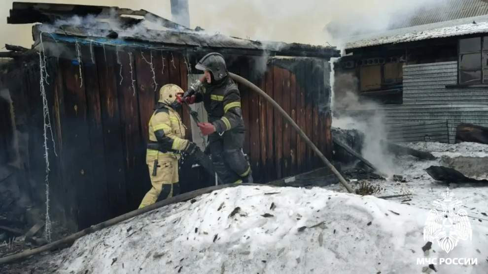 Пожар произошёл в селе Атаманово под Новокузнецком, огонь охватил частные домовладения и надворные постройки.