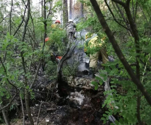 Трава и лес вспыхнули мгновенно. Площадь возгорания составила 25 тысяч квадратных метров. Ликвидировали пожар 17 человек и 4 единицы техники.