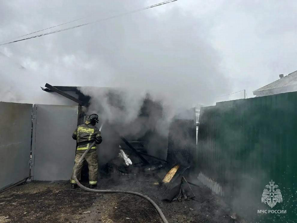 В селе Таяты загорелись жилой дом, баня и хозпостройка. Произошло обрушение кровли. Сотрудники МЧС России вместе с добровольной пожарной командой ликвидировали возгорание на площади 180 квадратных метров силами 9 человек, 3 единиц техники. Его предварительная причина - короткое замыкание.