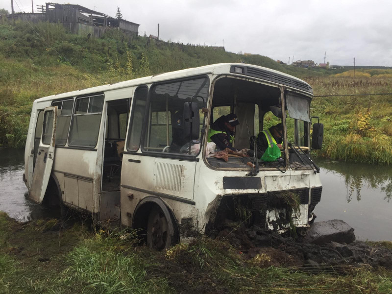 По предварительным данным, водитель автобуса ПАЗ перевозил рабочих птицефабрики в поселке Миндерла. Двигаясь в черте населенного пункта, он не справился с управлением и допустил съезд в кювет слева по ходу движения. Автобус оказался в воде. Признаков опьянения у водителя не обнаружено.