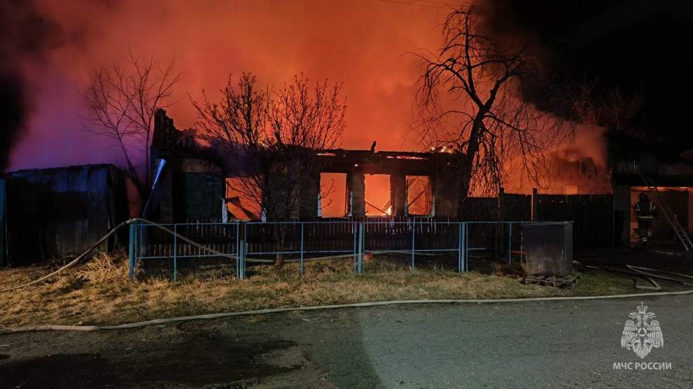 В минусинском селе Знаменка горели 2 жилых дома и хозпостройки. Сотрудники МЧС России вместе с добровольной пожарной командой ликвидировали возгорание на площади 206 квадратных метров силами 10 человек и 4 единиц техники. Пострадала женщина, её госпитализировали с ожогами. Предварительная причина пожара - нарушения при эксплуатации печи.