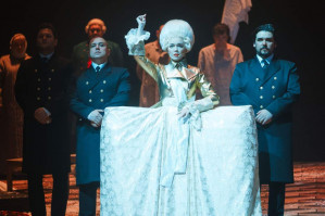 Словом, Насиров поставил, на первый взгляд, вполне так называемый "зрительский" спектакль. Незатейливый, даже не в меру весёлый (неслучайно повешенные жертвы пугачёвщины во втором акте напоминают привидения из диснеевских мультиков), но что-то меня в этой работе насторожило с самого начала. Режиссёр всем этим, простотой и суетой на сцене, буквально заманивает зрителя, чтобы в какой-то момент открыть для него в классической повести новые смыслы...