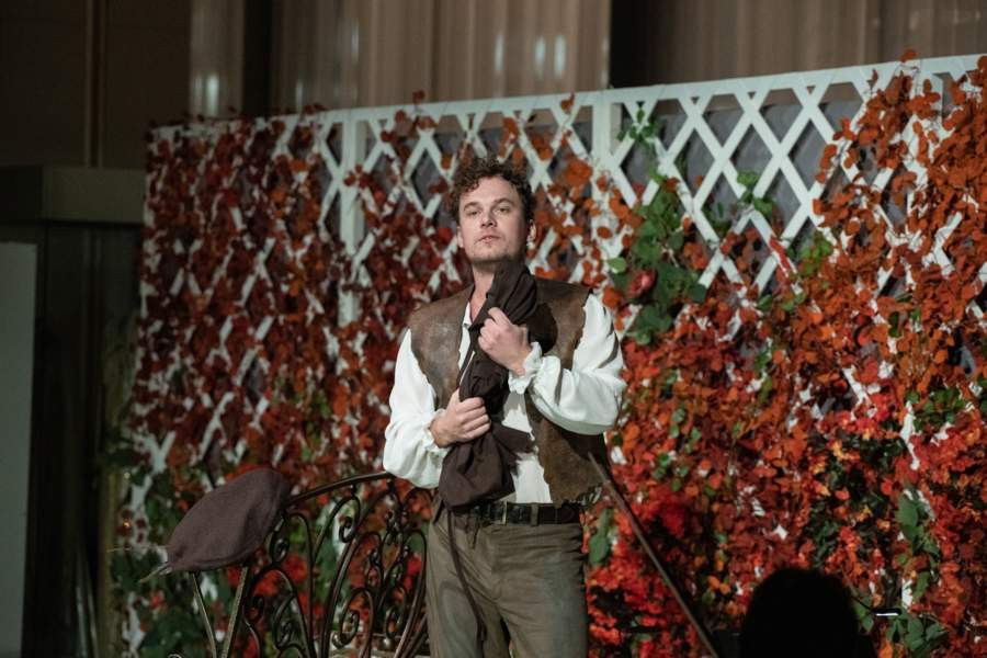 Удачной, оживляющей спектакль находкой Д. Дмитриева представляется расширение круга действующих лиц. Это кавалеры, тщетно добивающиеся расположения гордой красавицы. Александр Михалёв, Сергей Теленков и Евгений Балданов с явным удовольствием воплощают режиссёрский замысел и поют сладкозвучные серенады, принадлежащие перу Ф. Шуберта, Ж. Бизе, П. Масканьи, Л. Денца, Ф. Тости, А. Буцци-Печчиа.