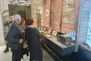 А увидели они сегодня историю почти всего XX века. Историю СССР-России, конечно: каждый период отражен в Национальном центре с помощью произведений Астафьева. И самые, пожалуй, впечатляющие инсталляции - это уголки деревенских и военных повестей, романов Виктора Петровича. Целые стены настоящих изб с окнами, в которых можно увидеть картины сельской жизни, военный вагон-теплушка, стоящий на самых натуральных рельсах.