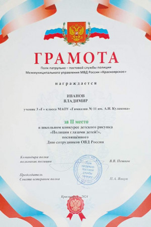 Ветераны полка патрульно-постовой службы полиции управления МВД России «Красноярское» подвели итоги детского конкурса рисунков, проводимого среди учащихся начальных классов красноярской гимназии № 11 имени А. Н. Кулакова.