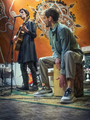 Друг именинника Сергей Андреев (сценический псевдоним -- INTRIGUN) специально прибыл на концерт из Москвы, и не только помогал ему, отбивая ритм некоторых песен на экзотическом ударном инструменте кахоне, но и исполнил несколько своих авторских песен. Впрочем, и Иван аккомпанировал Сергею, подыгрывая на гитаре.
