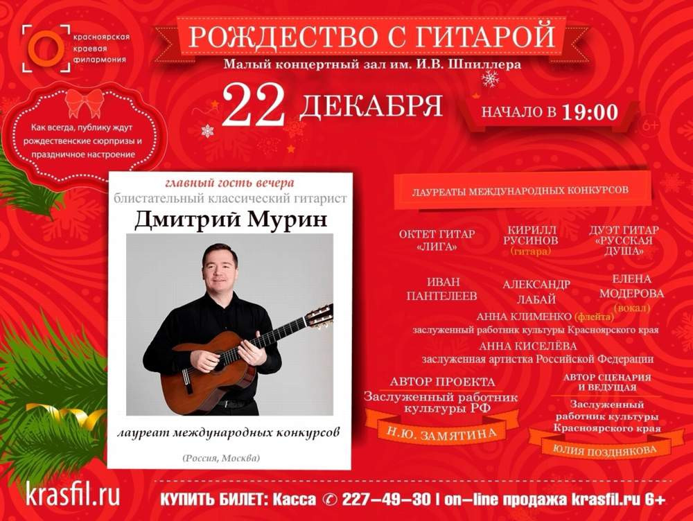 В текущем году главным приглашённым гостем «Рождества с гитарой» стал доцент Российской академии музыки имени Гнесиных Дмитрий Мурин (Москва). Причём он не только гитарист, ставший лауреатом престижных всероссийских и международных конкурсов. Для многих стало откровением его прекрасное пение под собственный виртуозный гитарный аккомпанемент. Не было никаких сомнений, что на сцене тенор, способный исполнять арии из самых сложных опер.