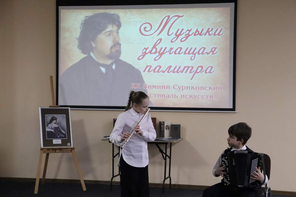 В рамках XX Зимнего Суриковского фестиваля искусств и празднования 178-летия со дня рождения художника Василия Ивановича Сурикова в Красноярской краевой спецбиблиотеке представили литературно-музыкальную композицию «Музыки звучащая палитра».