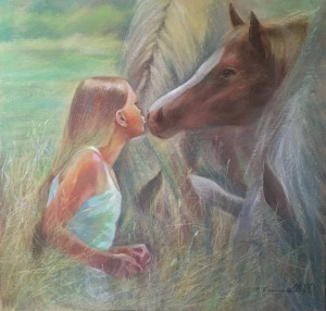 Здесь и врач, спасающая раненного бойца, и изящная балерина, и девушка, мечтательно глядящая вдаль, и девочка, молящаяся у образа, и нежная мама с ребёнком - такие разные портреты раскрывают многогранность женщины, её силу и хрупкость.