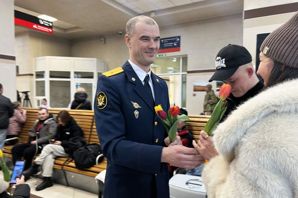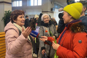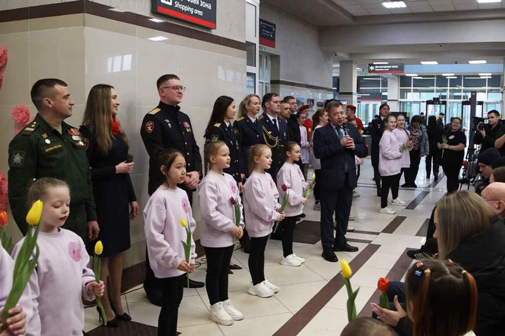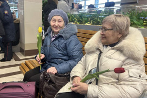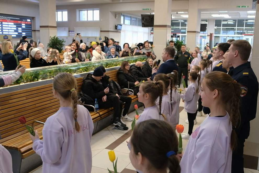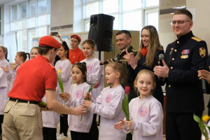 В рамках весенней всероссийской акции «Вам, любимые!» сотрудники правоохранительных органов, военнослужащие и работники Красноярской железной дороги поздравили представительниц прекрасного пола, исполнили песню и вручили цветы.