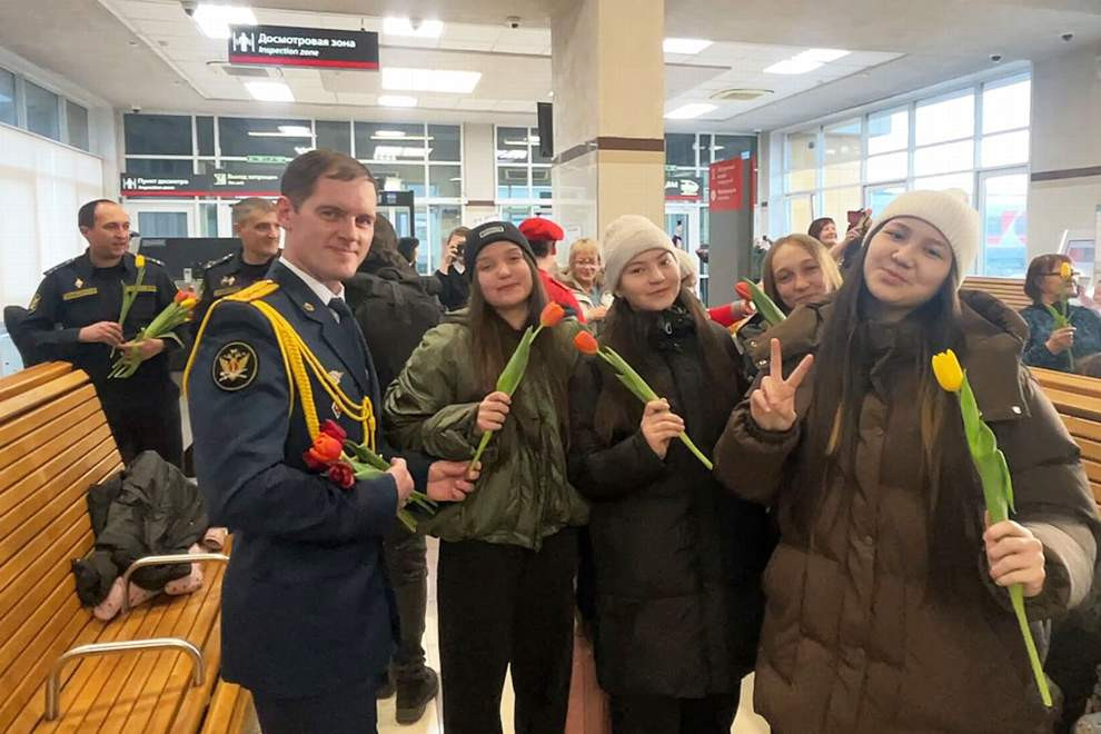 Члены молодёжного совета регионального управления службы судебных приставов, сотрудники Абаканского линейного отдела МВД России и помощники-юнармейцы вручили женщинам разноцветные тюльпаны, а танцоры студии танца «Импульс» дополнили выступление ярким, праздничным флешмобом.