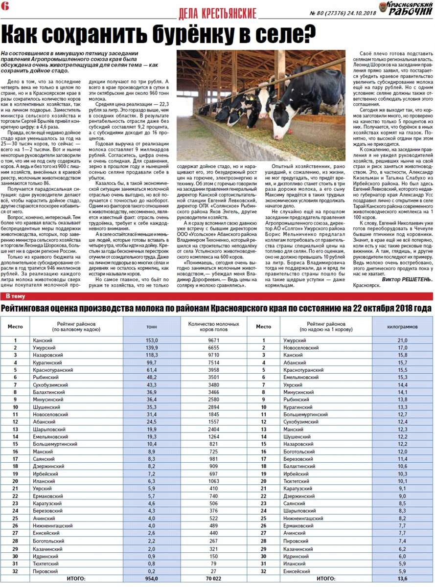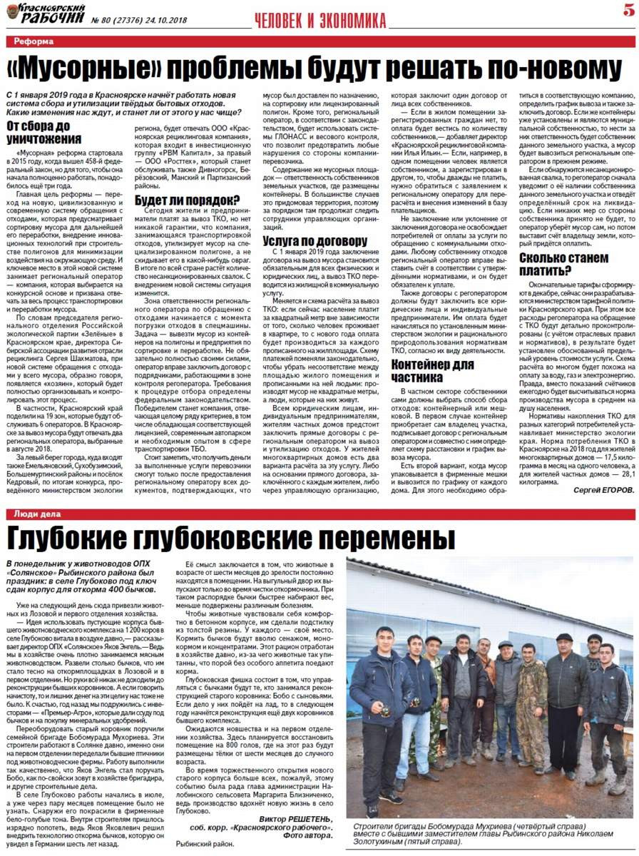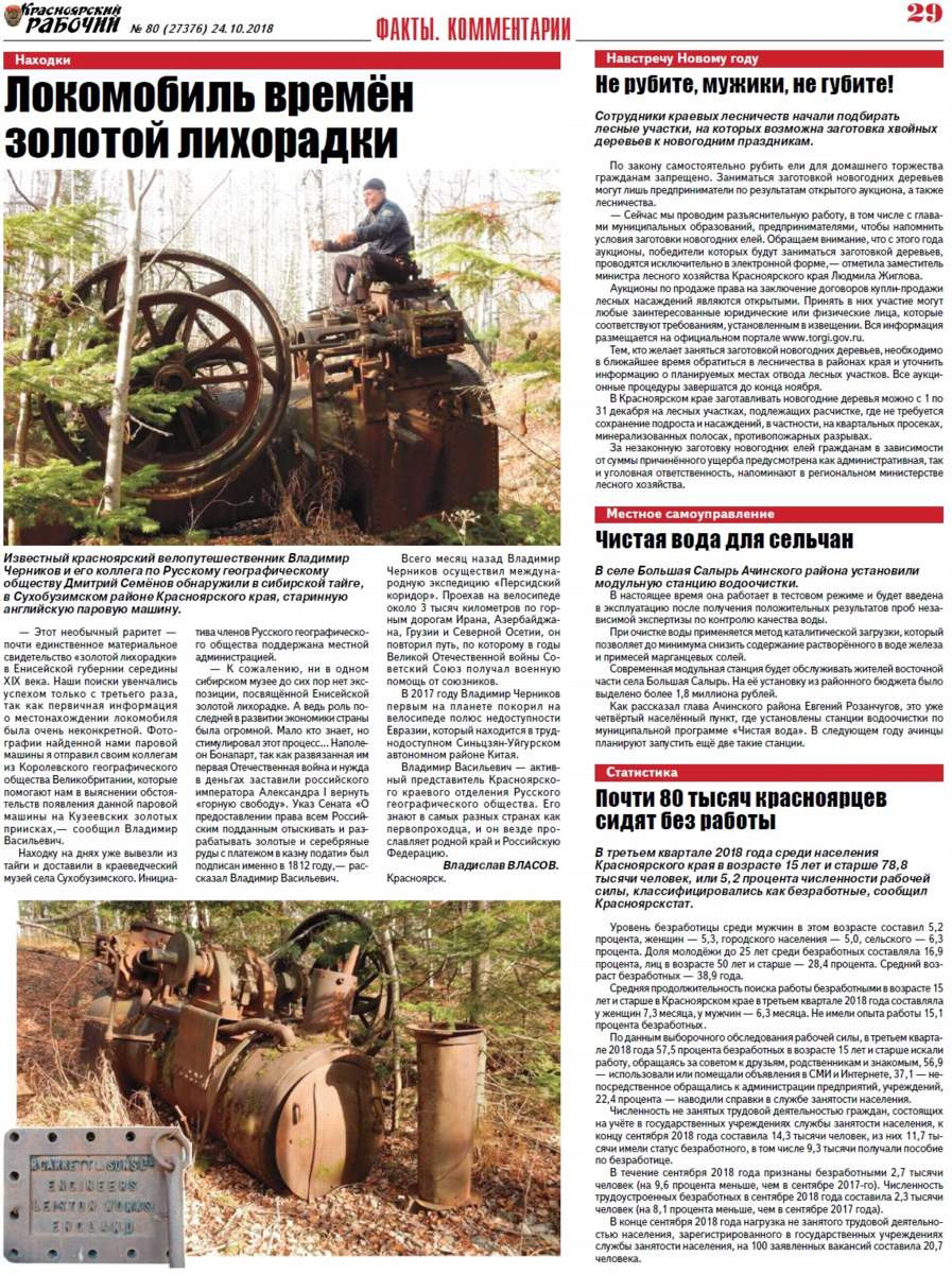 О чём пишет "Красноярский рабочий" в среду, 24 октября 2018 года