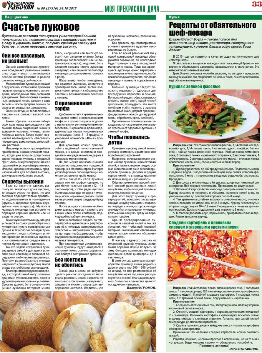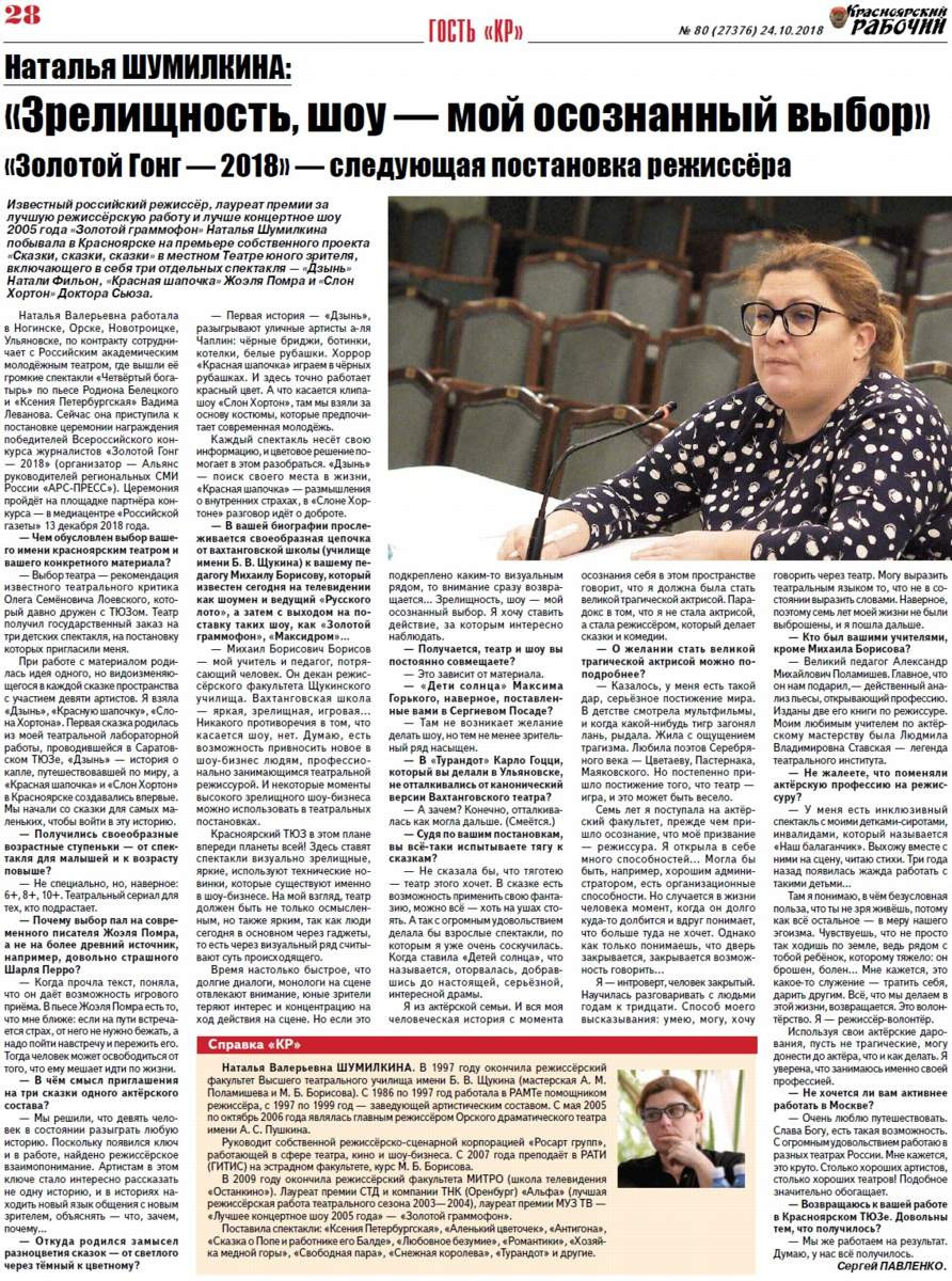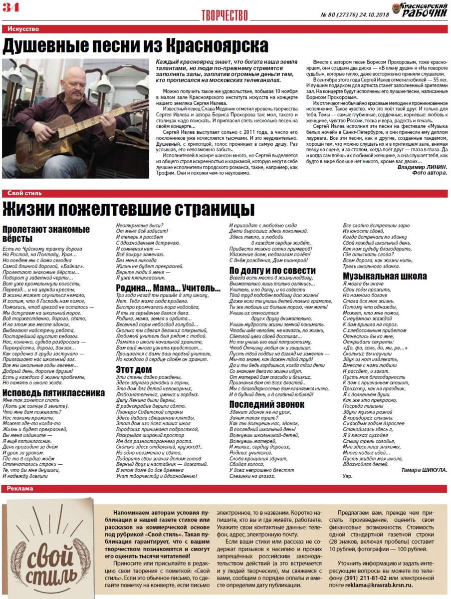 О чём пишет "Красноярский рабочий" в среду, 24 октября 2018 года