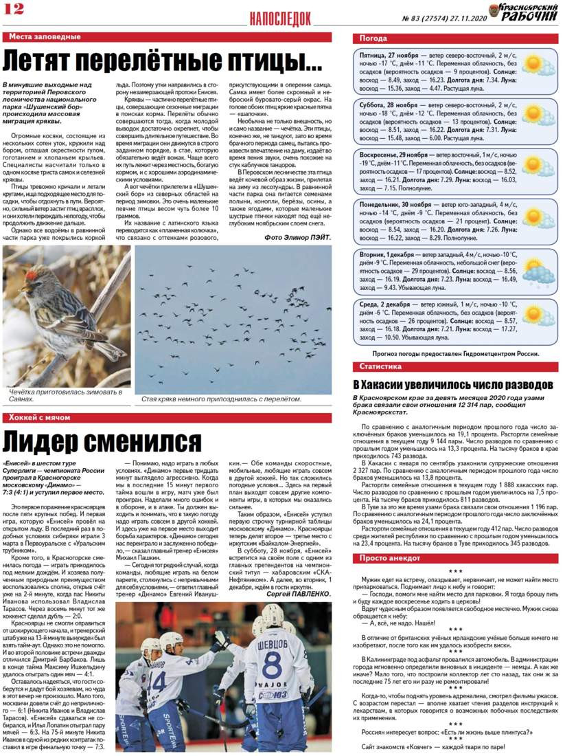 О чём пишет "Красноярский рабочий" в пятницу, 27 ноября 2020 года