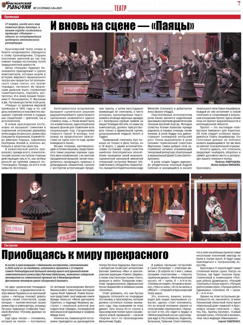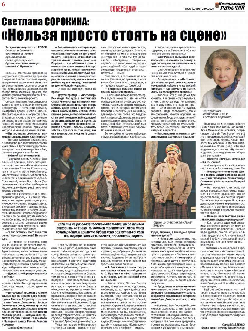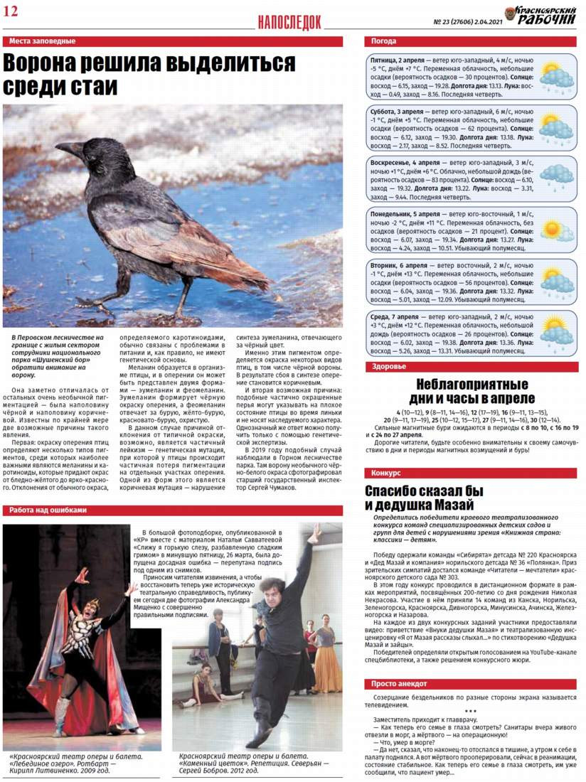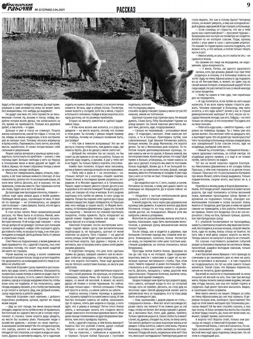 Читайте в "Красноярском рабочем" в пятницу, 2 апреля 2021 года
