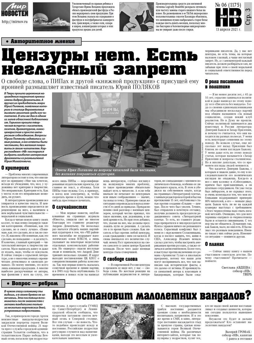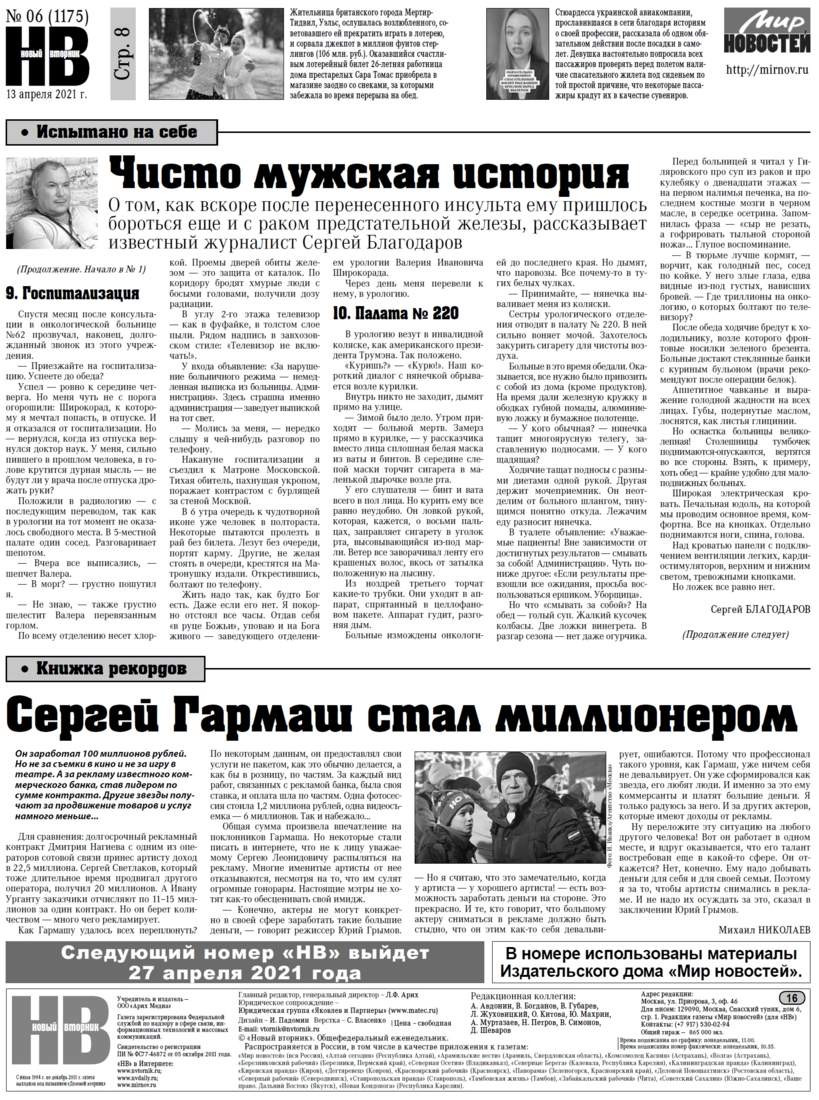 Следующий номер "КР" выйдет в пятницу, 16 апреля 2021 года.