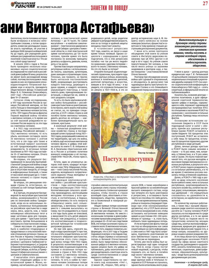 Читайте в "Красноярском рабочем" в среду, 14 апреля 2021 года