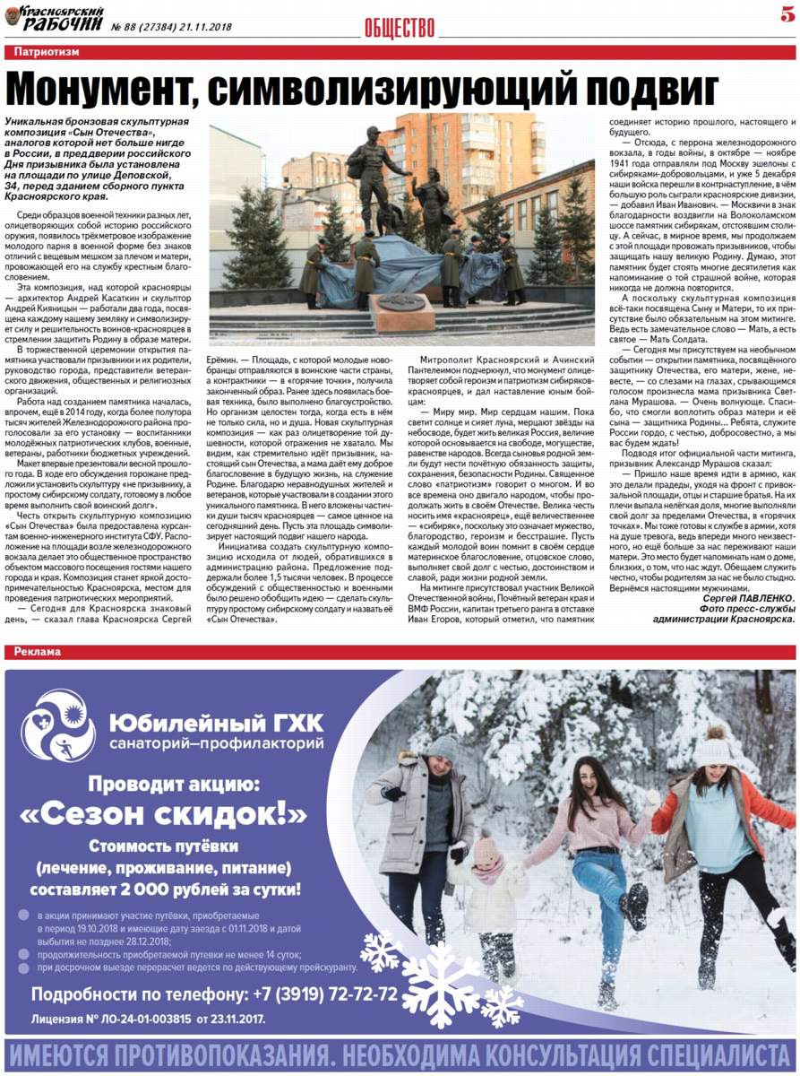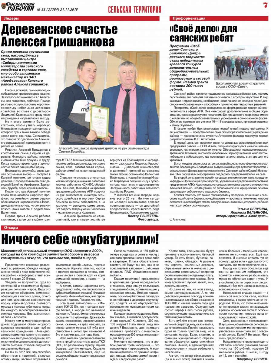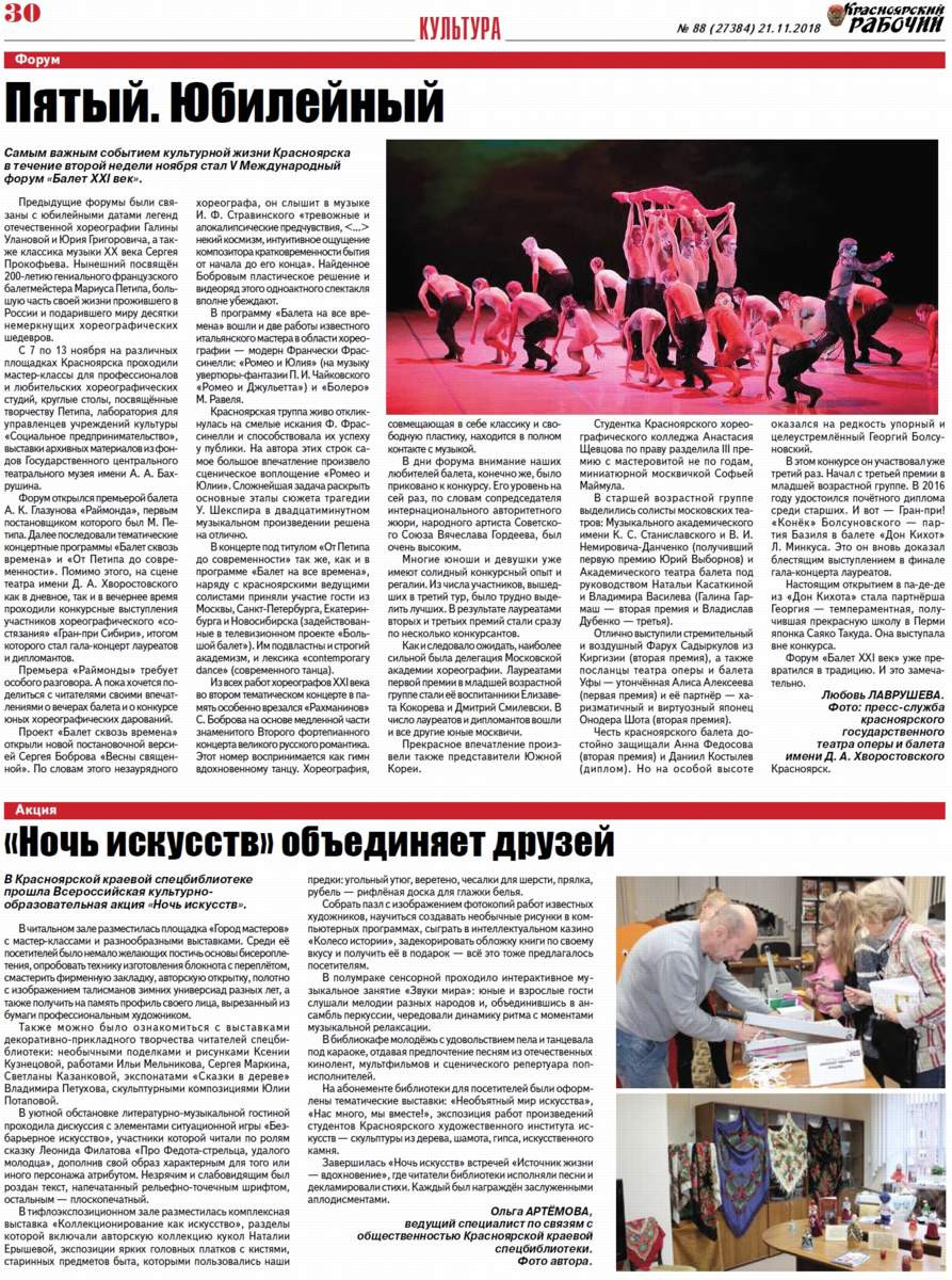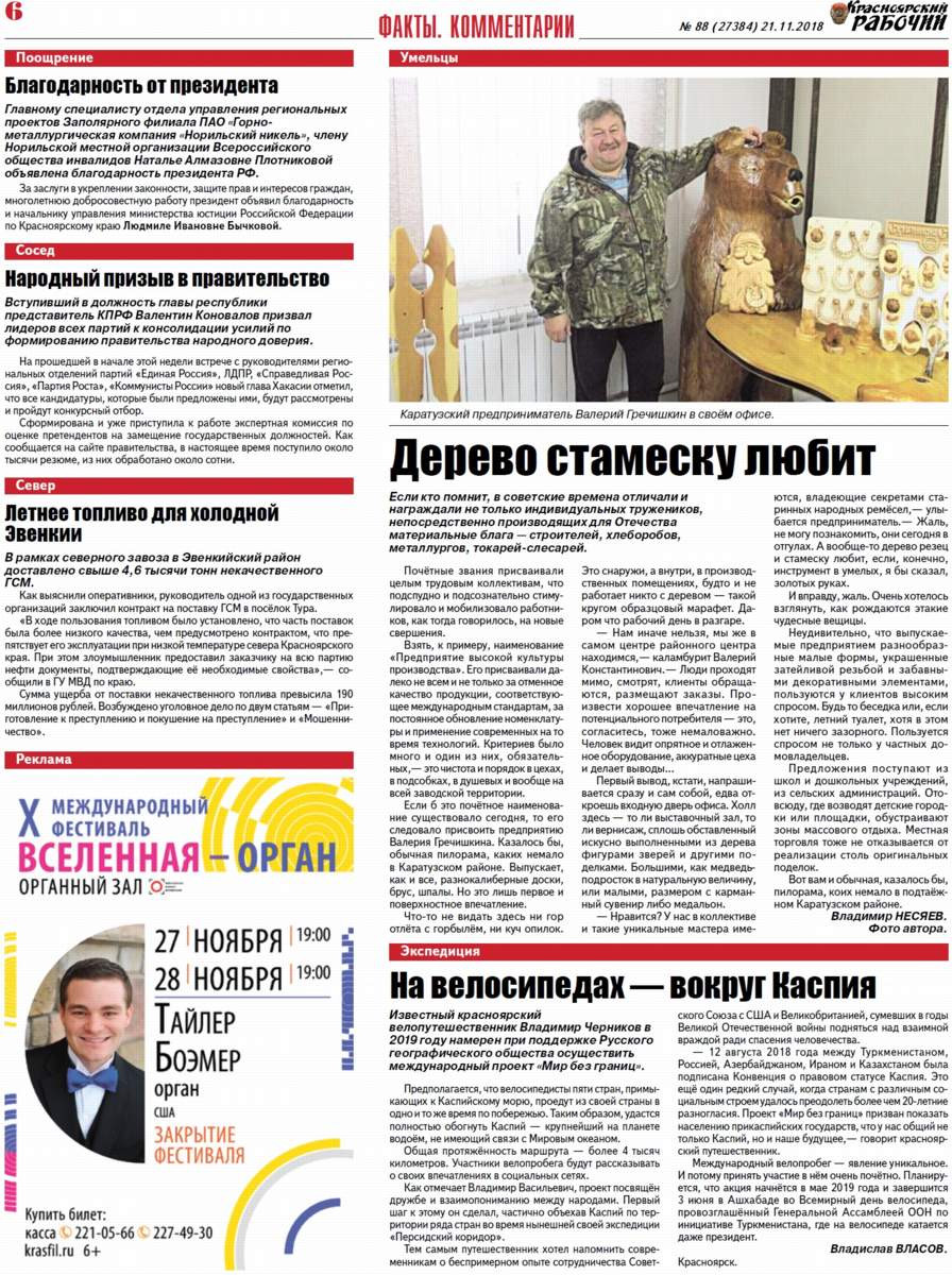 О чём пишет "Красноярский рабочий" в среду, 21 ноября 2018 года