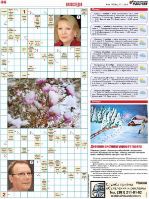 В номере опубликованы также новости, острые письма читателей, ТВ-программа на предстоящую неделю, тематические страницы "Телевечер", "Культура", "Полезно знать", "Дом и сад", гороскоп, объявления.