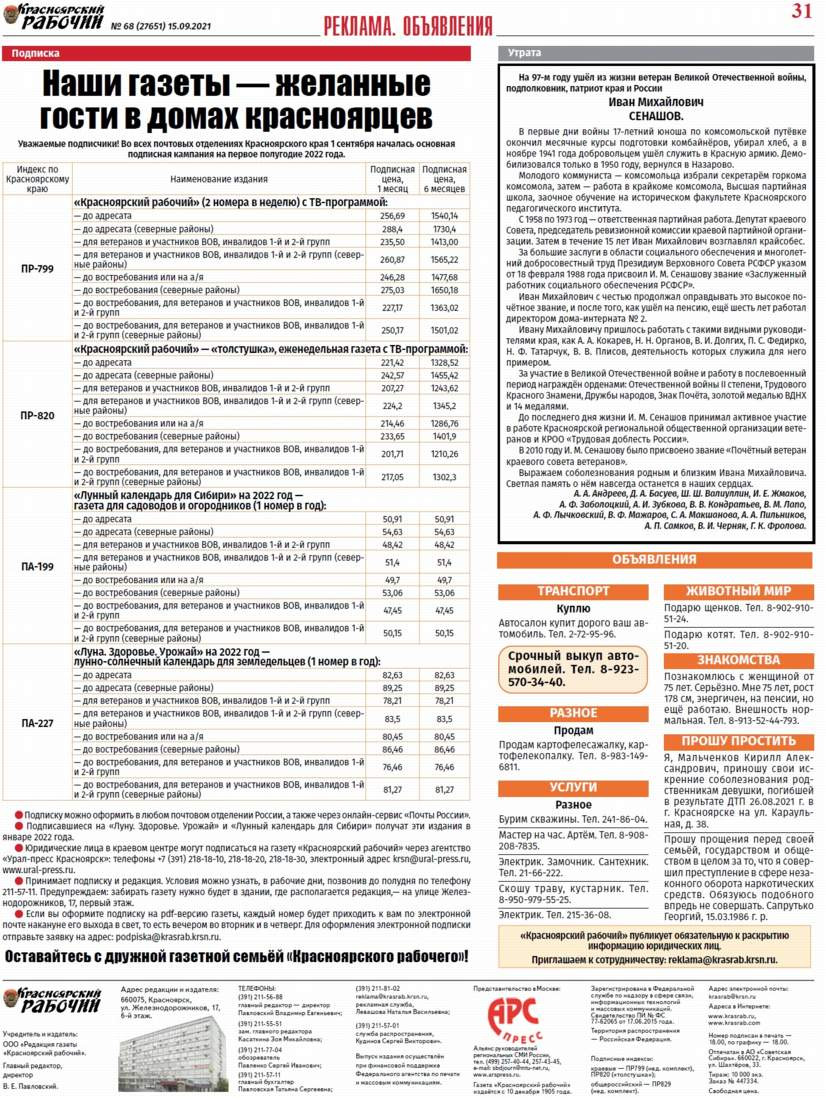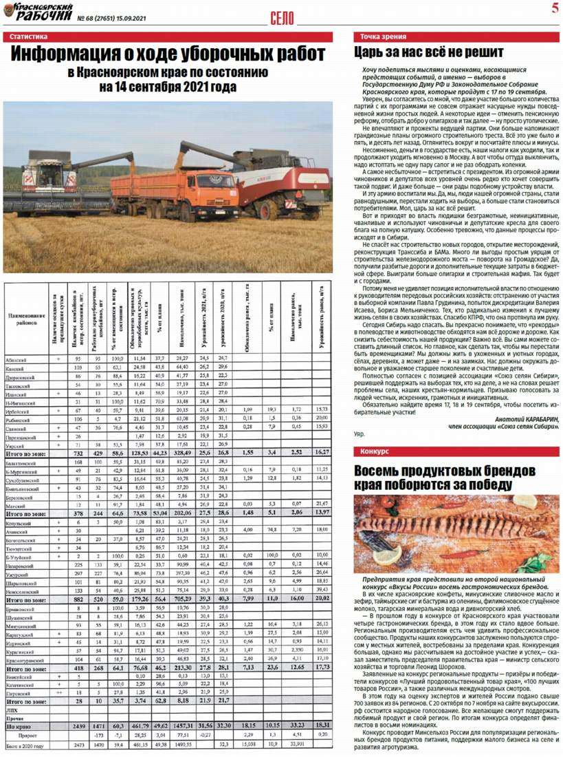 Читайте в "Красноярском рабочем" в среду, 15 сентября 2021 года
