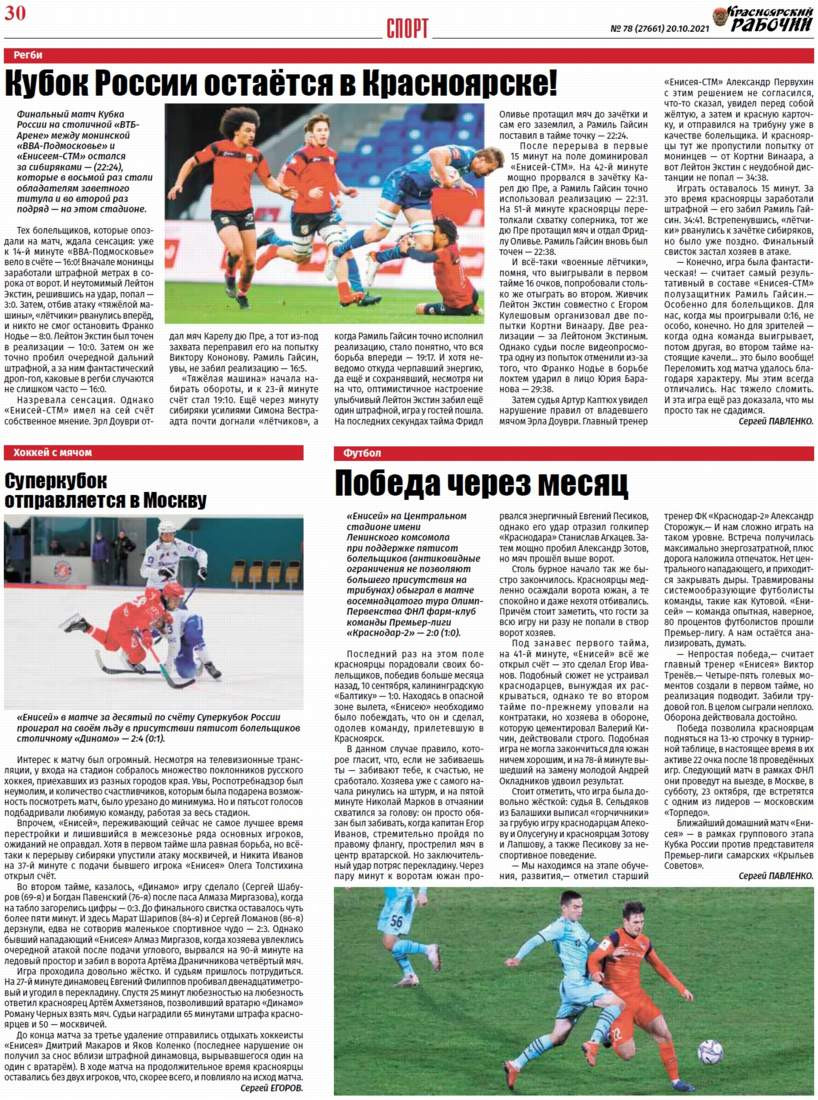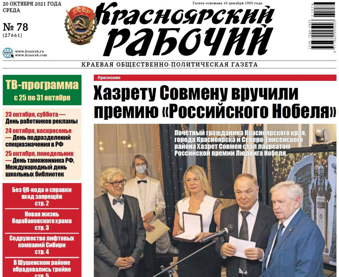 Читайте в "Красноярском рабочем" в среду, 20 октября 2021 года
