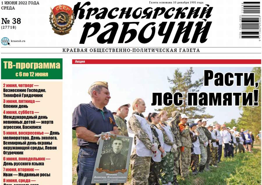 Читайте в газете "Красноярский рабочий" в среду, 1 июня 2022 года