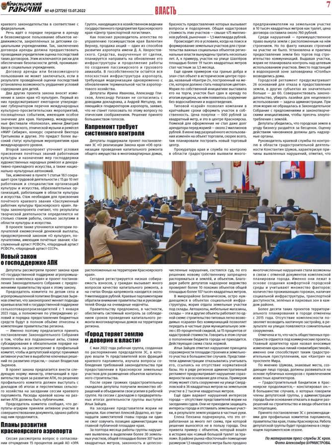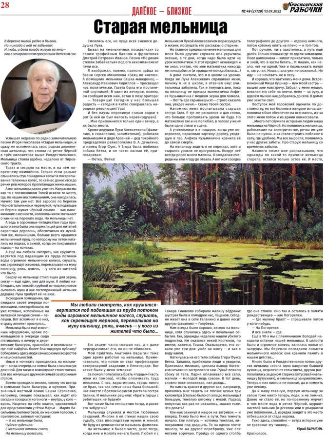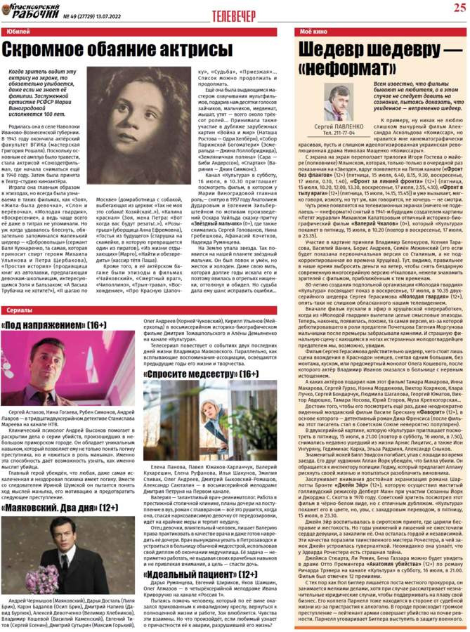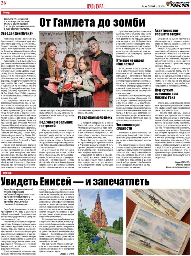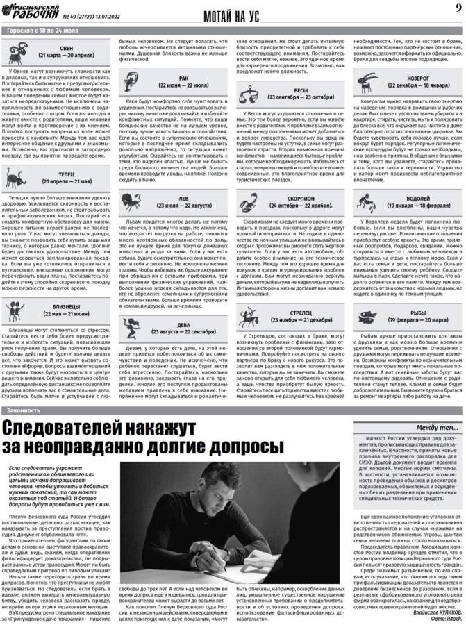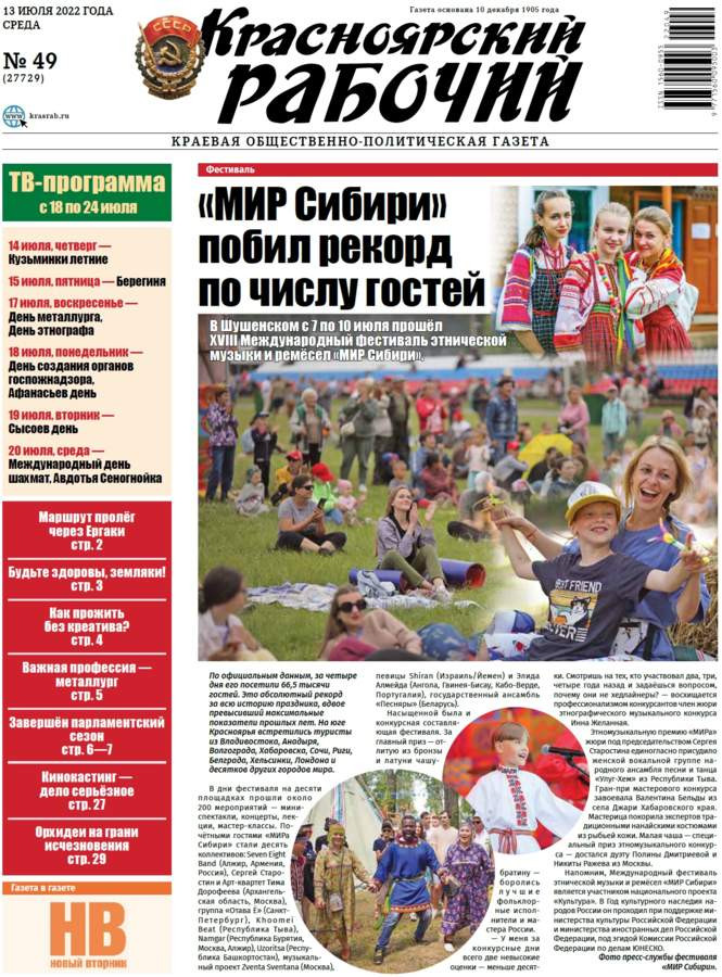 Читайте в газете "Красноярский рабочий" в среду, 13 июля 2022 года