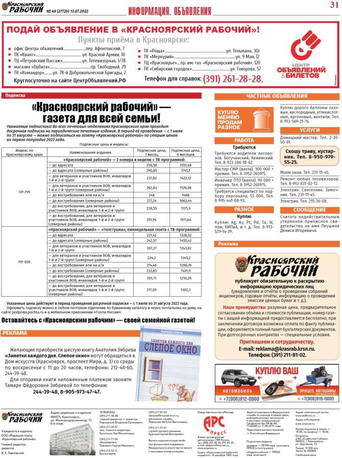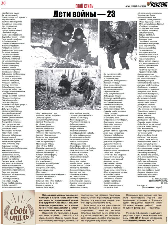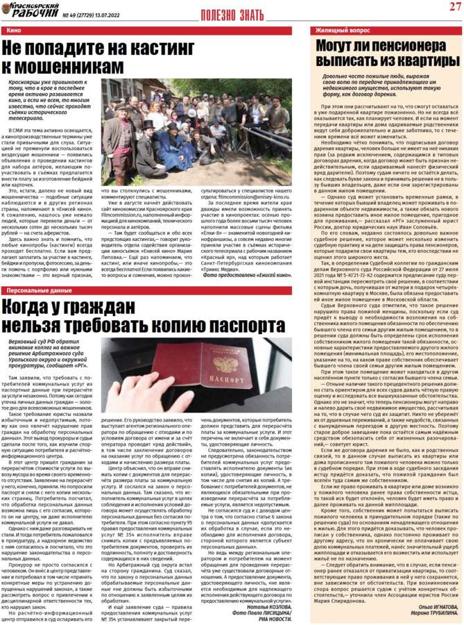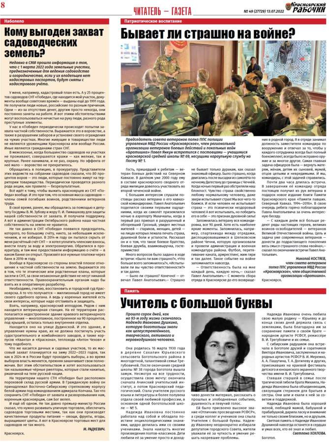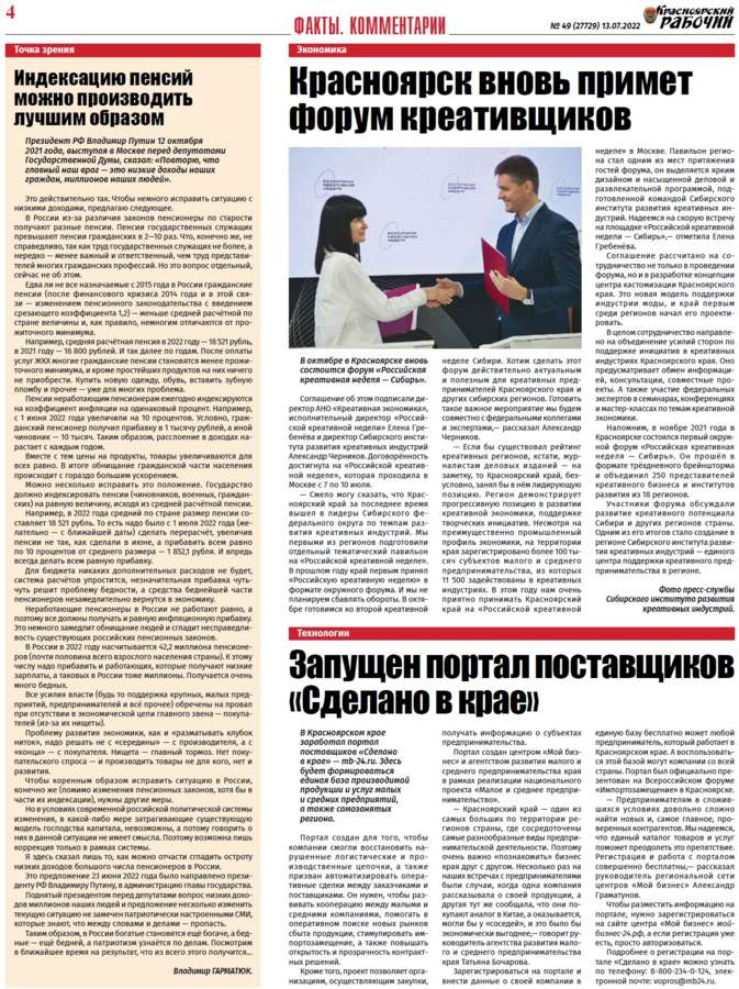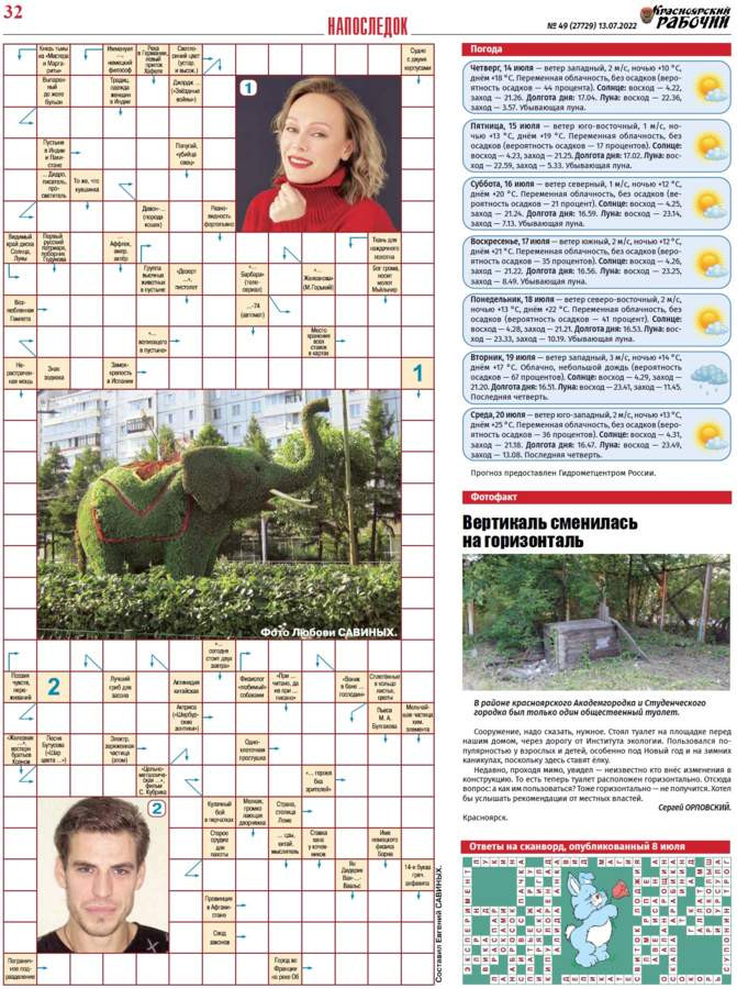 Читайте в газете "Красноярский рабочий" в среду, 13 июля 2022 года