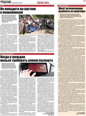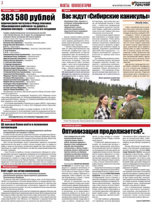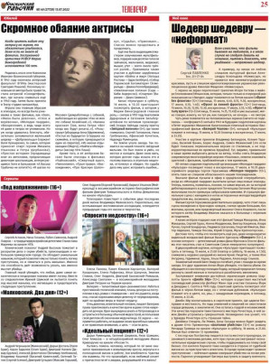 В номере вы найдёте также новости, отчёт с сессии ЗС края, письма читателей, тематические страницы "Телевечер", "Полезно знать", "Страна Сибирь", "Культура", ТВ-программу на неделю и недельный гороскоп, стихи, опубликованные под рубрикой "Свой стиль", рекламу, объявления, прогноз погоды на ближайшие дни.