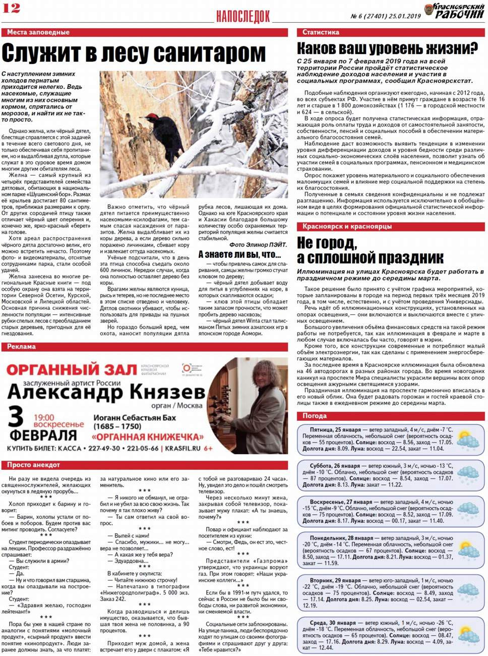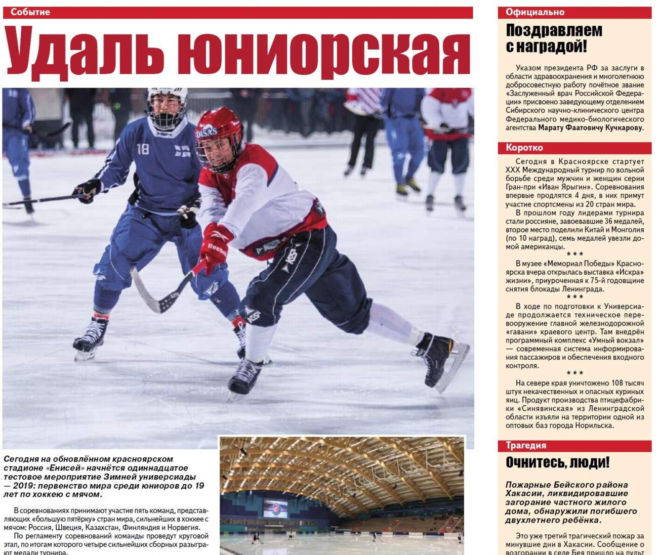 О чём пишет "Красноярский рабочий" в пятницу, 25 января 2018 года