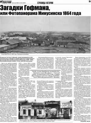 В одном из частных собраний выявлены два снимка, точнее, две фотопанорамы, сделанные иркутским фотографом Августом Гофманом. Одна из них известна, она представляет вид города Иркутска. А вторая - это снимок города Минусинска 1864 года. Самый, вероятно, ранний - и намного! - из существующих. "КР" впервые публикует эту панораму.