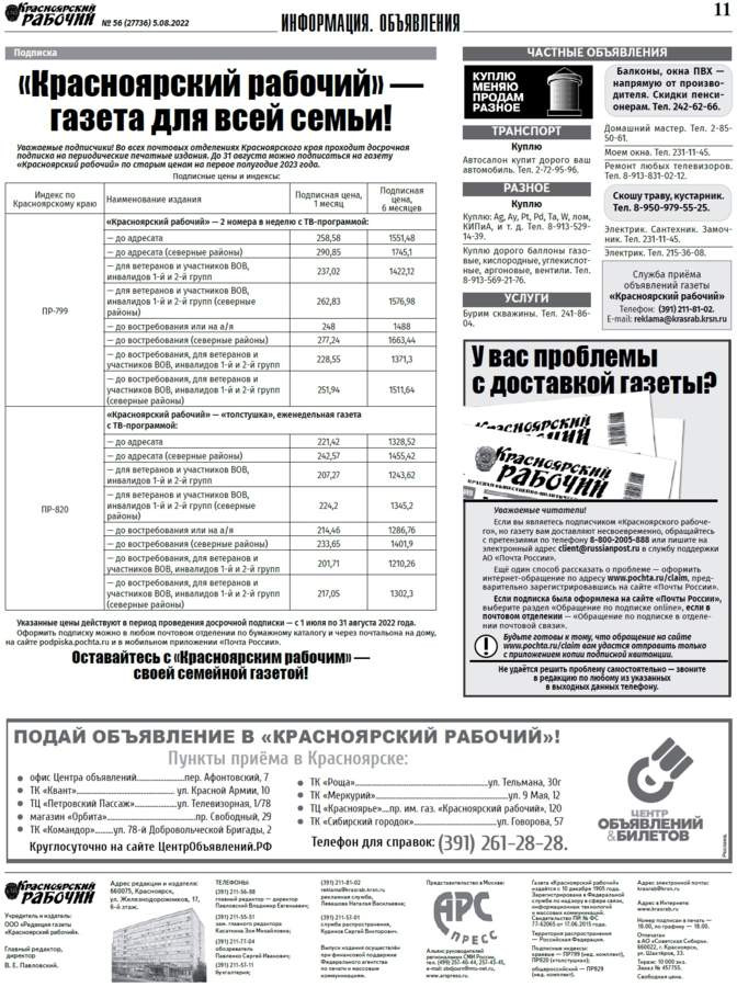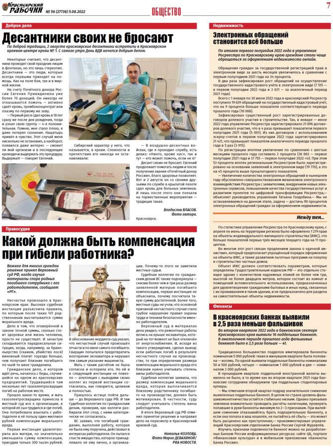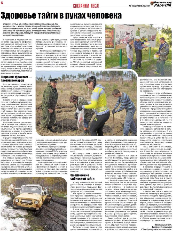 Читайте в "Красноярском рабочем" в пятницу, 5 августа 2022 года