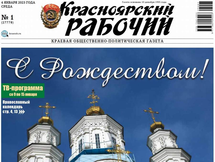 Читайте в газете "Красноярский рабочий" в среду, 4 января 202у года