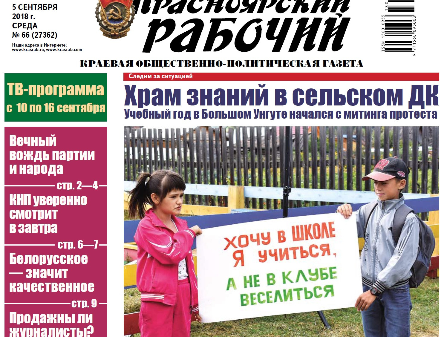 1 сентября началась основная подписка на первое полугодие 2019 года. Общероссийский индекс «Красноярского рабочего» - 12647 (недельный комплект, среда и пятница), краевые - 52251 (недельный комплект, среда и пятница), 52341 (среда, "толстушка").
