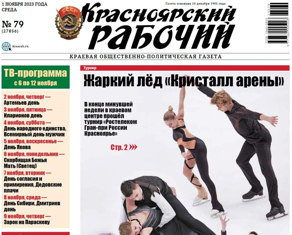Читайте в газете "Красноярский рабочий" в среду, 1 ноября 2023 года