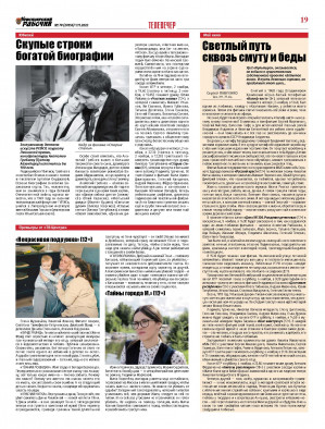 В номере вы найдёте также новости, письма читателей, тематические страницы "Спорт", "Полезно знать", "Телевечер", стихи читателя, ТВ-программу на неделю и недельный гороскоп, прогноз погоды и информацию о благоприятных и неблагоприятных днях.